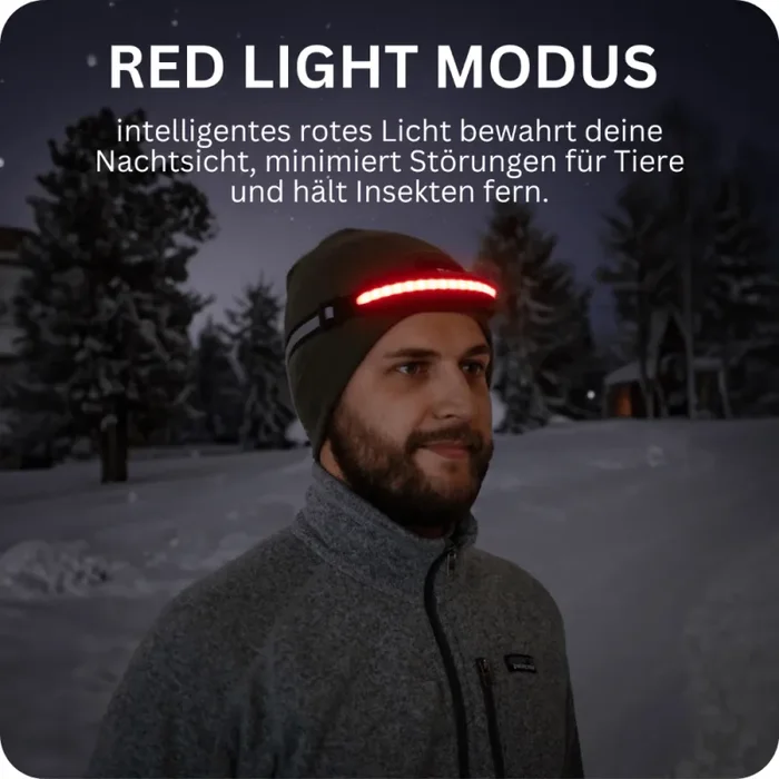 Erlebe die Zukunft nächtlicher Aktivitäten mit deiner Stirnlampe – ausgestattet mit intelligentem rotem Licht für maximale Sicherheit. Bewahre deine Nachtsicht, minimiere Störungen für Tiere und bleibe im Dunkeln gut sichtbar. Perfekt für abenteuerliche Outdoor-Unternehmungen und sicheres Bewegen in der Nacht.