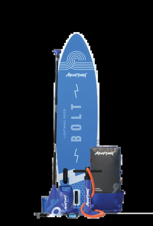 Aquaplanet BOLT 9’4″ aufblasbares Paddle-Board-Paket – Blau