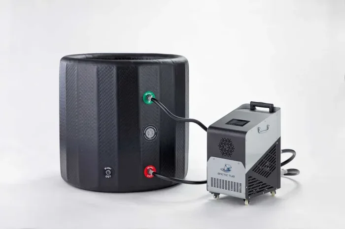 Der Arctic Tub kann das Wasser bis auf +3 Grad Celsius herunterkühlen, pro Stunde schafft das Kältegerät das Wasser, um circa 3 Grad Celsius zu kühlen. Das Becken ist sehr kompakt, bietet aber genug Platz, um vollständig bis zum Hals einzutauchen. Die Verbindungsschläuche werden einfach jeweils an das Becken und an das Gerät angeschlossen.