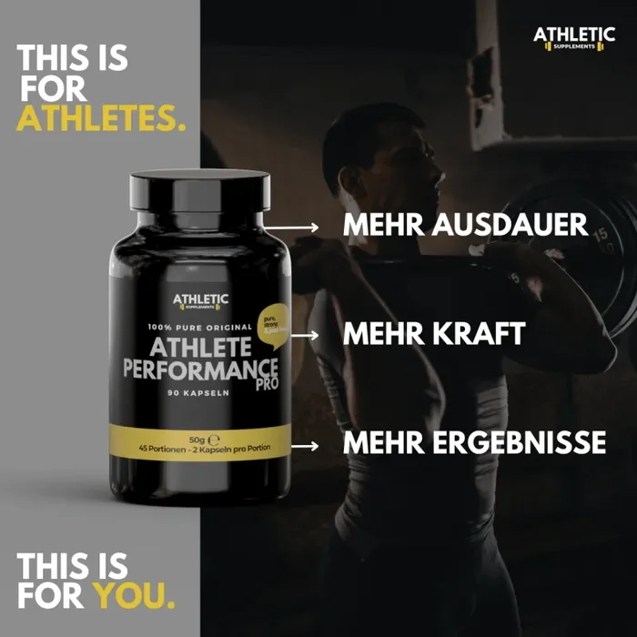 Die Athlete Performance Pro Kapseln sind speziell für Athleten entwickelt, die Spitzenleistungen anstreben. Mit dem Credo „This is for Athletes“ bieten sie eine kraftvolle Kombination hochwertiger Inhaltsstoffe, um deine sportliche Performance auf ein neues Level zu bringen.