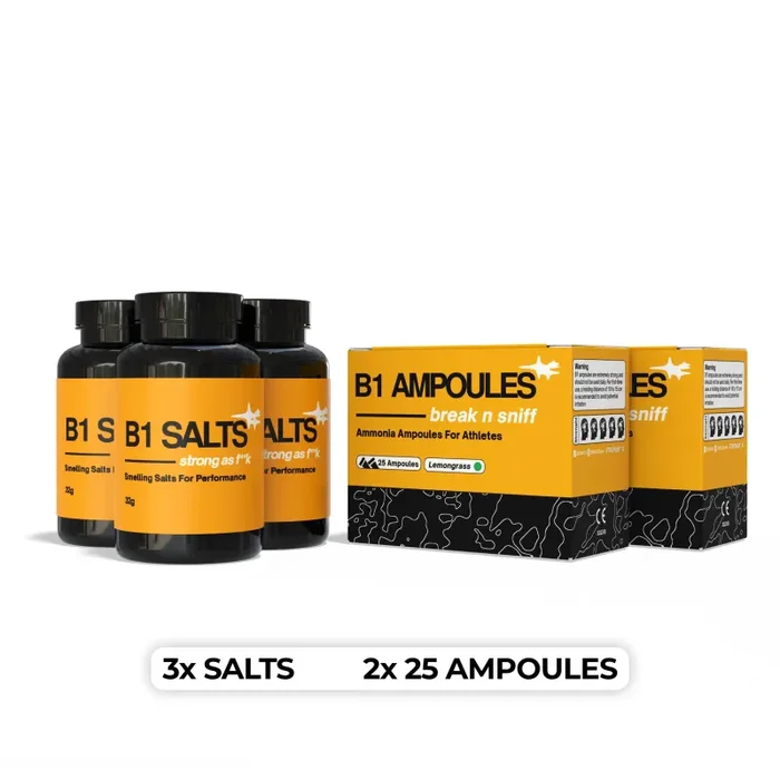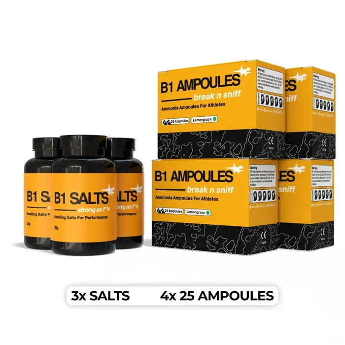 Our B1 BUNDLES offer you the flexibility to choose between products or use them together for a synergistic effect, depending on your training situation, competition intensity, or personal preference. They are the ideal choice for athletes who want to use both our SALTS and AMPOULES to take their performance to the next level.