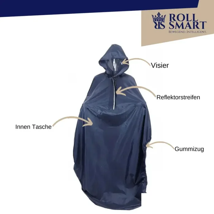 Bestellen Sie noch heute unseren Roll Smart Regenponcho für Rollstuhlfahrer und genießen Sie den optimalen Schutz und Komfort, den er Ihnen bietet. Bleiben Sie trocken und stylisch, egal wie das Wetter ist!