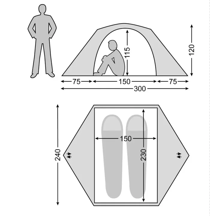 Größe Innenzelt (LxBxH) : 230 x 150 x 115 cm - Material: 100% Polyester Nortech & 100% Oxford Polyester Nortech