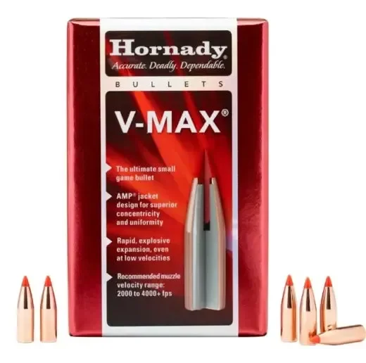 Mit einer Kombination aus bewährten Materialien, innovativem Design und stromlinienförmigem Profil stellt das Hornady® V-MAX® die Spitze dessen dar, was ein spezialisiertes Raubtiergeschoss (Varmint) erreichen kann. Es bietet gerade Flugbahnen, maximale Präzision, dramatische Expansion und explosive Fragmentierung über eine große Reichweite und bei unterschiedlichen Geschwindigkeiten.