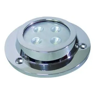 Runde Unterwasserbeleuchtung aus Edelstahl mit 12/24-V-Anschluss und 4 Hochleistungs-LED-Leuchten.