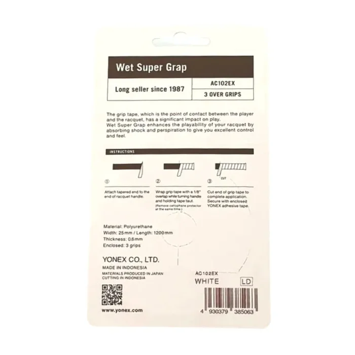 Yonex Wet Super Grap 10X3er (AC102 EX) Weiss ableitet die Feuchtigkeit und vermittelt der Hand selbst bei sehr feuchten Bedingungen ein trockenes Gefühl. Jedes YONEX Griffband wurde entwickelt, um eine zuverlässige Verbindung zwischen Hand und Schläger herzustellen.