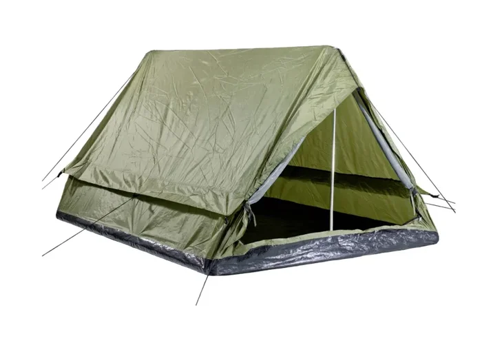 Zelt „Minipack“ – Ranger für 2 Personen mit Pack- und Tragetasche, Moskito-Netzeingang, trittfestem Boden aus PU-Gewebe, Zeltgestänge aus Metall und Heringe aus Stahl, leichtes Transportgewicht, schnell auf- und abzubauen!
